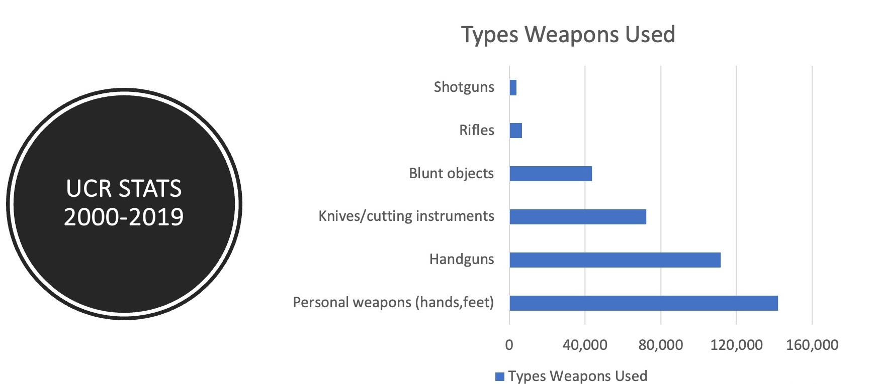 You can see here that the most common types of firearms used during violent attacks are handguns. The 2020 UCR data shows that 62% of victims were shot with handguns while 38% of the victims were shot with rifles, shotguns, or other firearms not defined as handguns.