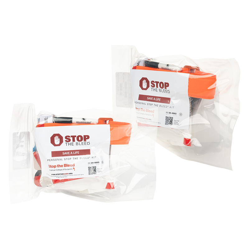 Personal kits contain a C-A-T® Tourniquet, your choice of gauze, one responder ETD, gloves, shears, a marker, and a STOP THE BLEED® instructional booklet. Can address massive hemorrhage in limbs, shoulders, and groin.