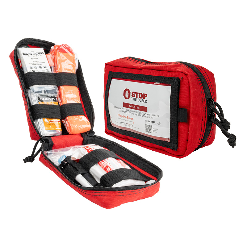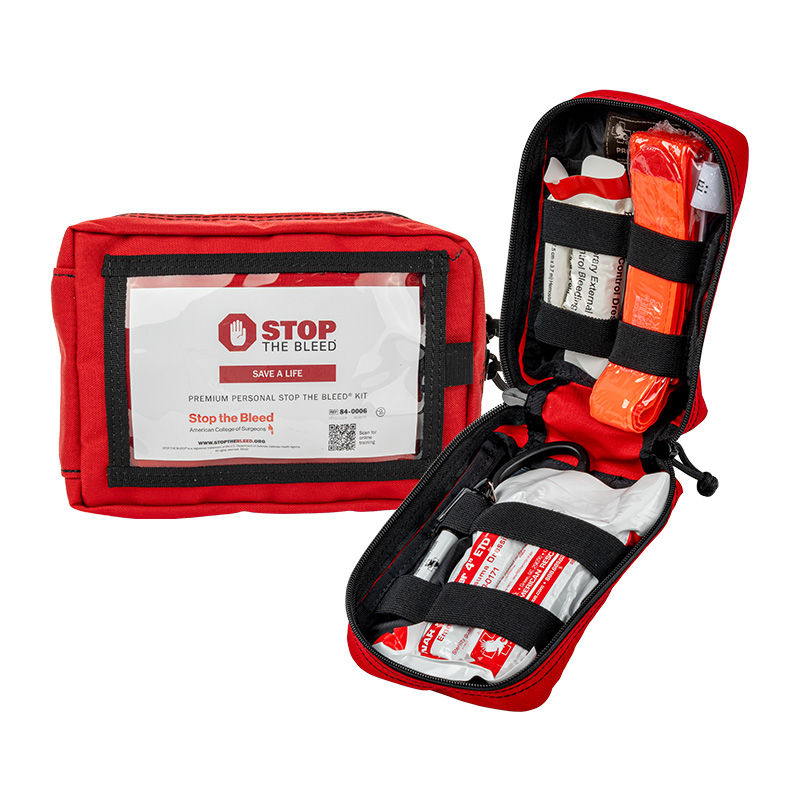Premium Personal Kits contain everything that’s in a personal kit, but in a zippered red nylon bag for added durability. It will keep you prepared for a bleeding emergency wherever you are.